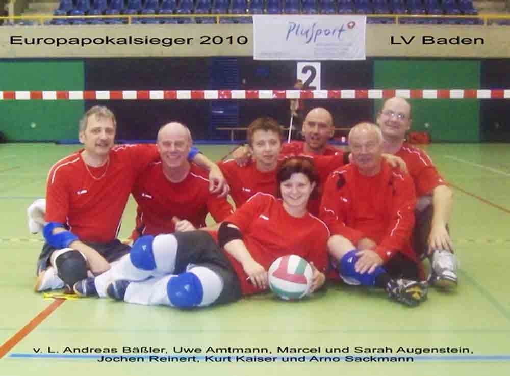 Sensationell - Die Spielgemeinschaft aus dem Landesverband Baden gewinnt erstmals den Europapokal im Sitzball in Olten in der Schweiz. Obwohl die Badener als Nachrückmannschaft erst in letzter Minute gemeldet wurden, hat die Mannschaft um Sportwart Kurt Kaiser ein erfolgreiches Wochenende zu verzeichnen. Ungeschlagen und mit nur einem Unentschieden gegen die Favoriten der deutschen Nationalmannschaft konnte die Mannschaft aus Baden triumphieren und den Titel Europacup-Sieger 2010 erringen.